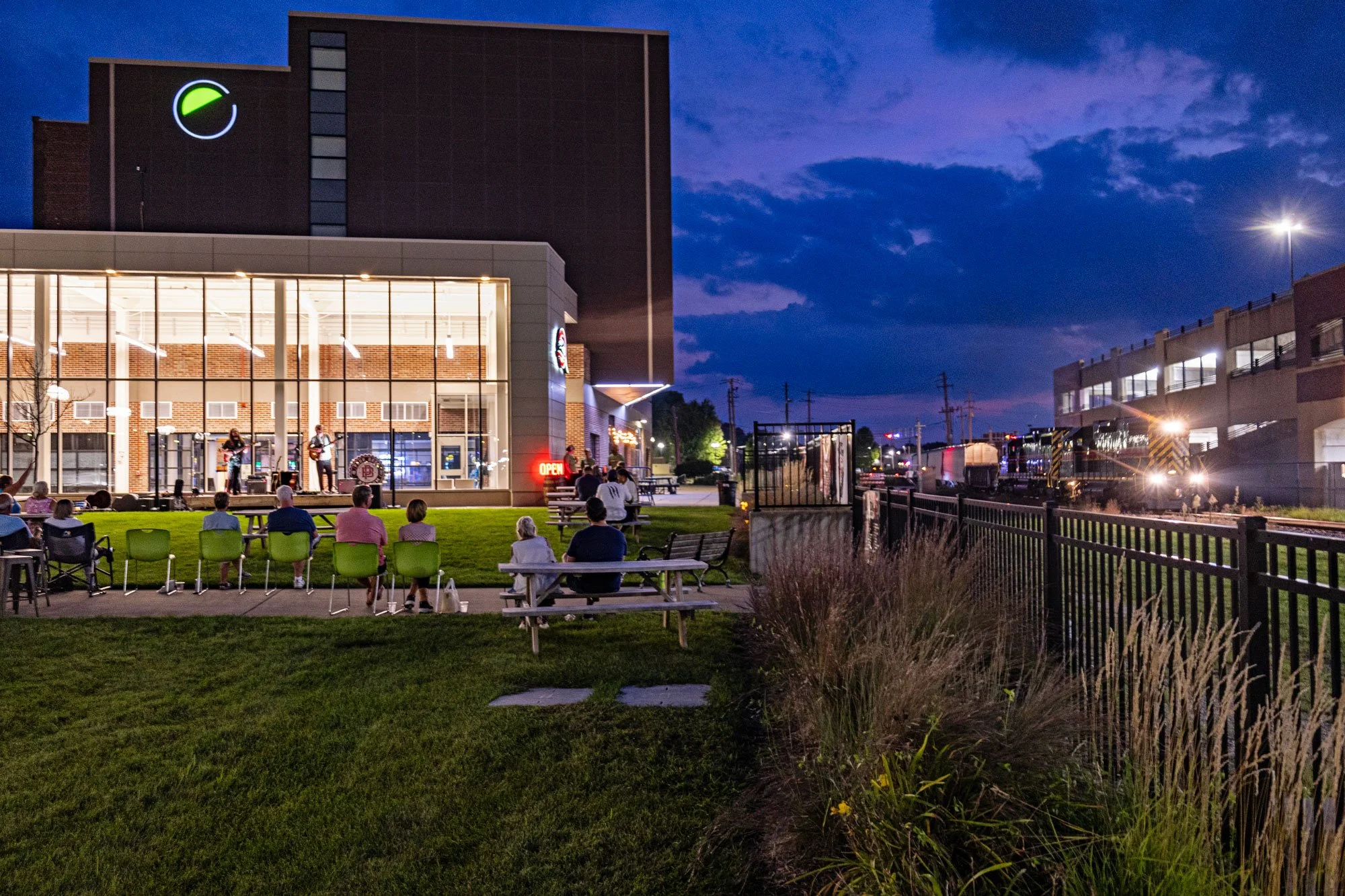 Pour Bros not only features beers on tap, including several local choices, but they also offer mead, and wine, along with the standard mixed drinks, though mixed drinks are not self-serve. And while they don’t offer food of their own, there’s usually a food truck awaiting your order which you can enjoy during the Railside concerts. The variety of offerings, both in relation to drinks and the rotating weekly music throughout the summer, makes this a place you’re going to want to check out. It doesn’t feel like a normal night out. They aim to create a different atmosphere than you’ll get in other spaces in our area. Utilizing an open, almost beer hall-like climate that welcomes groups, those crowds fill out the greenspace just beyond the sight of arcade games and an air hockey table that was calling my name, where each Saturday music can be heard, seen, and danced to throughout the evening.