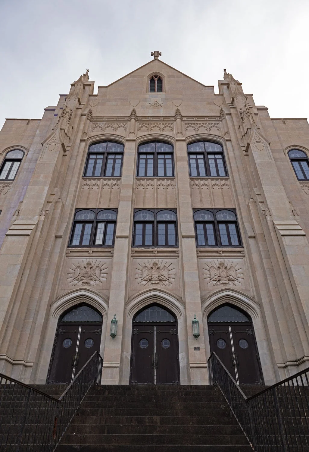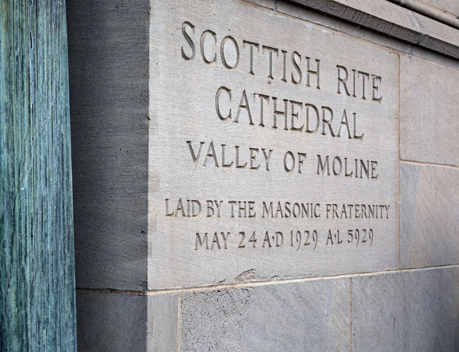 Moline’s Scottish Rite Cathedral rests on 7th Ave in Moline, adjacent to Interstate 74 as it stretches from the edge of the Mississippi and winds past downtown Moline. Though it’s long been a beacon for those rushing by in their modern motor-powered carriages, the keystone of the cathedral was placed on May 24th, 1929, decades before the elevated road system as we know it opened to the public. There are more than 25 Scottish Rite Cathedrals that were constructed, including one in Peoria and one in downtown Des Moines where I had the opportunity to showcase my photography as part of the 2021 Iowa Arts Gala. While the exterior is awe-inspiring, the real inspiration is found beyond the doors, where QC locals, Brent and Sarah Tubbs operate the 500-seat theater held within a building once utilized by four separate Scottish Rites bodies, as well as Eastern Star, and International Rainbow chapters, among others. The Moline Valley Masonic bodies were located here until 2018 when they sold to Adam Bain and Blake Humphrey, a pair of Native Quad Citians themselves.