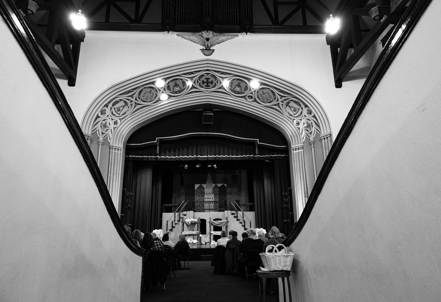 The secret lives of freemasons have long perplexed the populous: spawning band names, films, and even a Simpsons semi-sing-along parody so discreetly hidden behind the fictitious name, “The Stonecutters”. Their impact on the world of art is undeniable. However when one thinks of this “structural society” it is the resilience of what they constructed in past decades that has helped keep them relevant in the present. With a history rooted in medieval stonemasonry, when building cathedrals and religious structures was considered sacred, it’s easy to appreciate what this group is responsible for. They have helped build some truly historical monuments, and while there is no shortage of stone structures in this area, there are a few that stand out above the crowd, one of those is the Scottish Rite Cathedral in Moline which is now the home of The Spotlight Theatre, the final feature in this year-long focus on local venues.