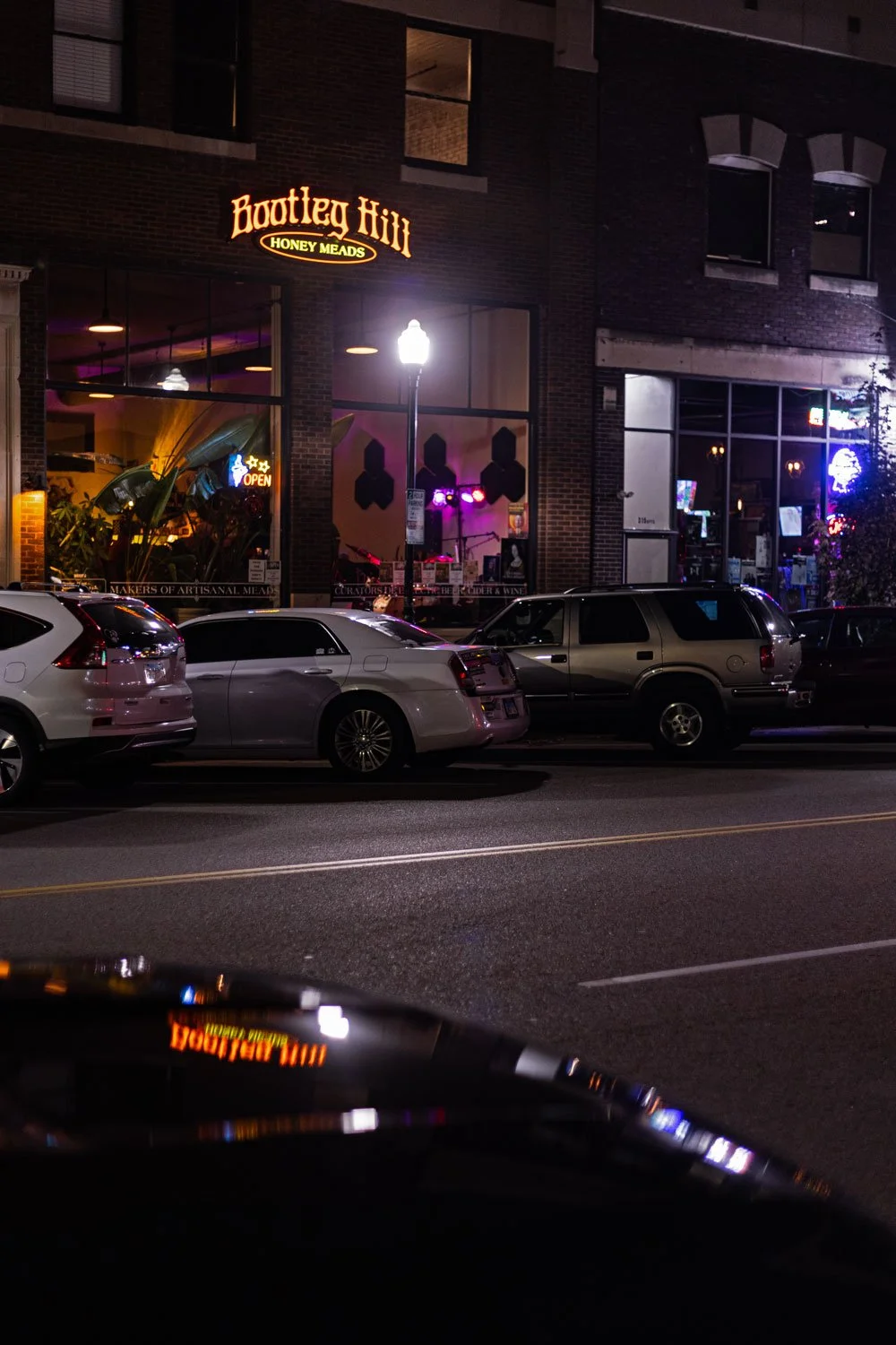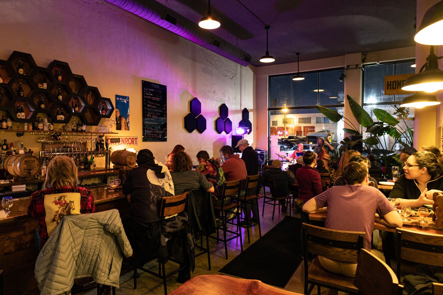 With vaulted ceilings and windows stretching well above your highest reaches, acting as an aperture allowing each passerby to be beckoned into this little hive, it’s a rather intimate space that feels anything but confined. This comfort is only exemplified by the couches and chairs which supply a lounge-like feel directly in front of the aforementioned windows. Allowing for an open view of 2nd Street and a front-row seat for the myriad of musical acts that grace “center stage”. There’s a mellow energy to Bootleg Hill that matches this seating one would call “non-traditional” for a bar setting, but this is very much not a traditional bar setting, and it gives vibes a lot more related to a winery than a bar. This energy is a major piece of what makes this place so appealing and helps it stand out among the rest. While Bootleg Hill stands on its own, it is also a very involved piece of Motor Row, an area that was once occupied primarily by auto businesses, and has slowly been reestablished in the present with a more modern movement in mind. It’s likely a lot of you readers found yourself here during this year’s installment of Alternating Currents. The variety of flavors that Bootleg Hill offers mirrors the diversity of performers who have come to share a piece of themselves with anyone who cares to listen. From soft acoustic ballads sung to a respectively muted mid-afternoon crowd to raucous performances from esoteric enigmas being taken in by revelers spilling out onto the sidewalk this space caters to players and fans of all levels, and it has become a vital piece of the local scene. So make a plan to stop in the next time you are downtown, and remember when you support Bootleg Hill you aren’t just supporting a local business you are helping support beekeepers and their bees, which are undeniably vital pieces of our entire existence.