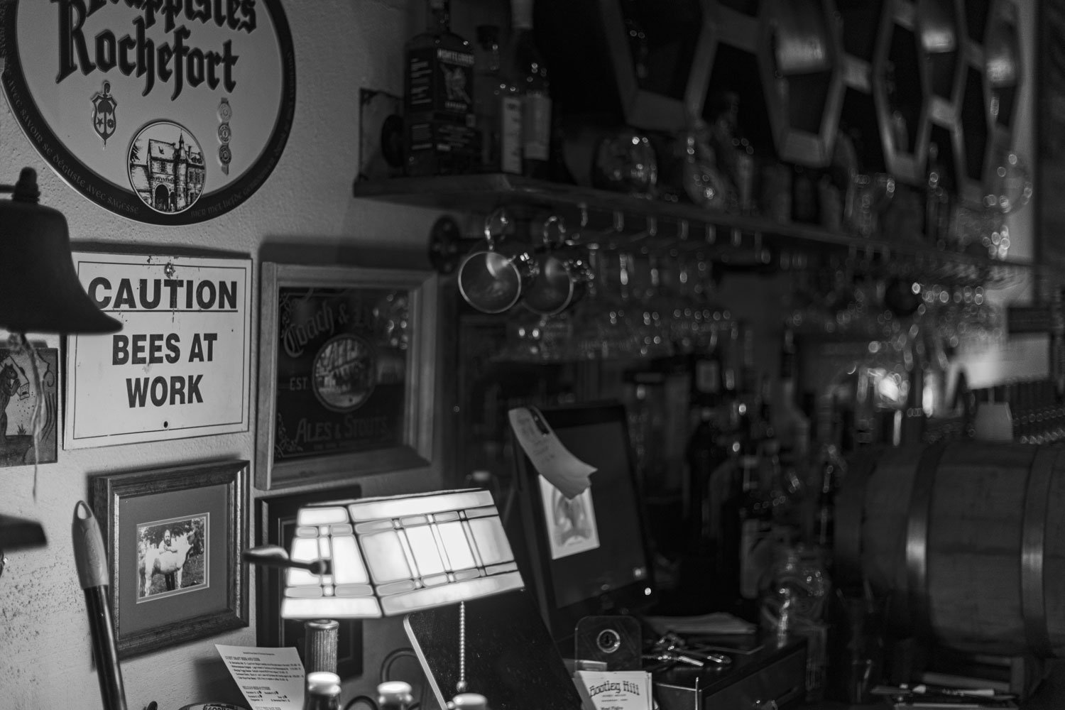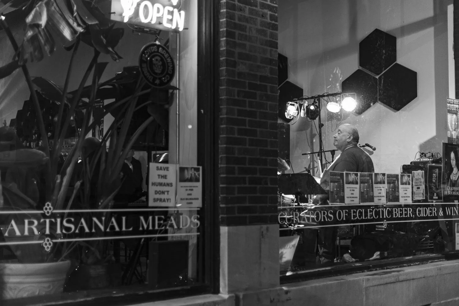 The Bootleg Hill story began years before they found this lovely location sandwiched between prior feature, Raccoon Motel, and The Half Nelson, who they partially share an entrance with in the old Nelson Manufacturing building. This building, originally constructed in 1922 for the N.O Nelson Company housed several things, including a seed store, and an antique business before Rick Harris took over the west half of the space in 2018. Rick has long held a passion for brewing and began this mead dream in his East Moline basement in 2013, though he had been “meading” since 1998. Further adding to the lore, the home where this all started was previously inhabited by a local 1920s bootlegger. As an artist, always trying to grow, I have a great deal of respect for people who take a dream from the basement to a breathing being, especially when that involves helping establish a first-of-its-kind product/location for the present Quad Cities. When it was in its early stages, before occupying this century-old building, I remember walking into various Hy-Vee locations around the Quad Cities and seeing Rick giving out free samples of this elixir with a magical history to any patron willing to try something different than the normal wine, whiskey or beer offerings commonly filling the shelves and subsequently their carts. His passion for the product was clear, and whether he was fermenting it in his home in the early days, or in the large metal vessels set up in the rear of the downtown Davenport location that passion continues to be present even now as I spoke with him and watched him being personable with the people that filled his business Saturday in celebration of their 6th anniversary on 2nd Street.